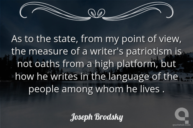 As to the state, from my point of view, the measure of a writer's patriotism is not oaths from a high platform, but how he writes in the language of the people among whom he lives .