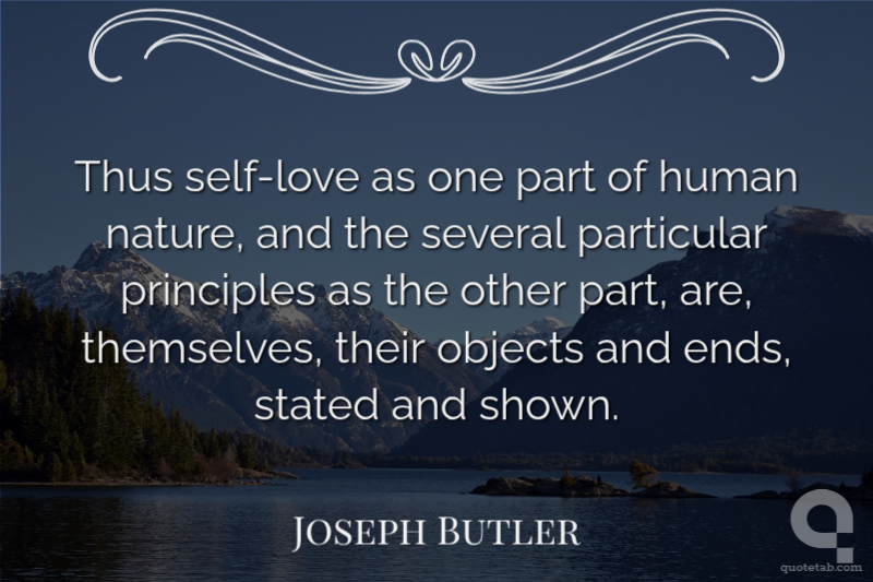 Thus self-love as one part of human nature, and the several particular principles as the other part, are, themselves, their objects and ends, stated and shown.