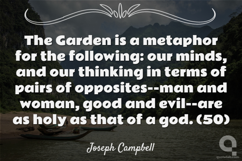 The Garden is a metaphor for the following: our minds, and our thinking in terms of pairs of opposites--man and woman, good and evil--are as holy as that of a god. (50)