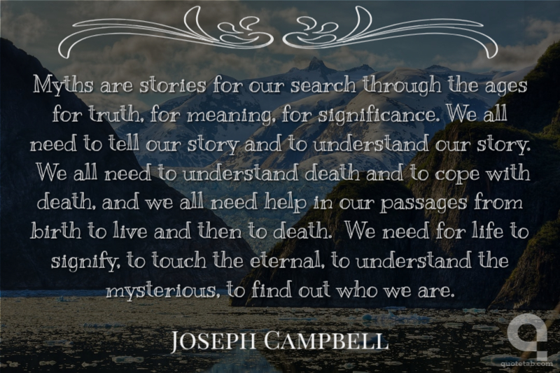 Myths are stories for our search through the ages for truth, for meaning, for significance. We all need to tell our story and to understand our story. We all need to understand death and to cope with death, and we all need help in our passages from birth to live and then to death. We need for life to signify, to touch the eternal, to understand the mysterious, to find out who we are.