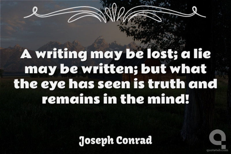 A writing may be lost; a lie may be written; but what the eye has seen is truth and remains in the mind!