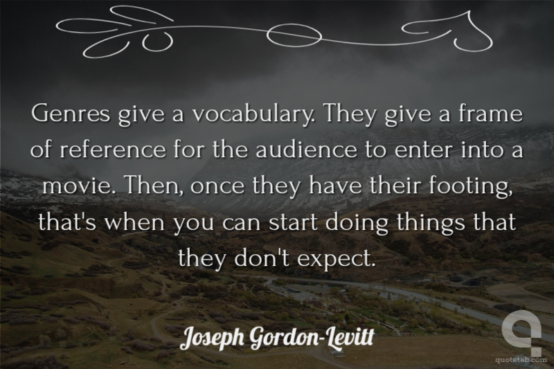 Genres give a vocabulary. They give a frame of reference for the audience to enter into a movie. Then, once they have their footing, that's when you can start doing things that they don't expect.