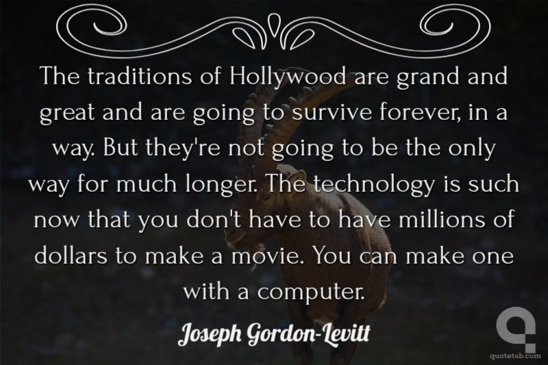 The traditions of Hollywood are grand and great and are going to survive forever, in a way. But they're not going to be the only way for much longer. The technology is such now that you don't have to have millions of dollars to make a movie. You can make one with a computer.