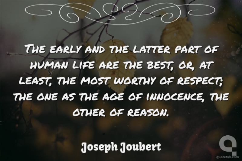 The early and the latter part of human life are the best, or, at least, the most worthy of respect; the one as the age of innocence, the other of reason.