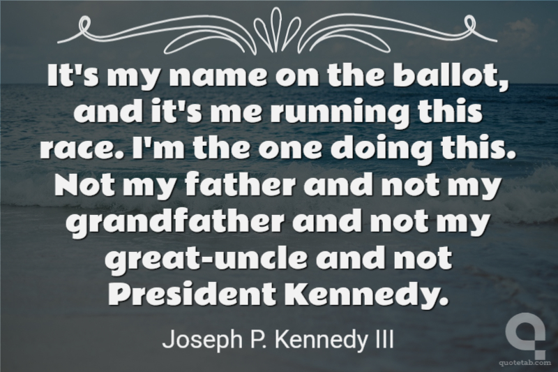It's my name on the ballot, and it's me running this race. I'm the one doing this. Not my father and not my grandfather and not my great-uncle and not President Kennedy.