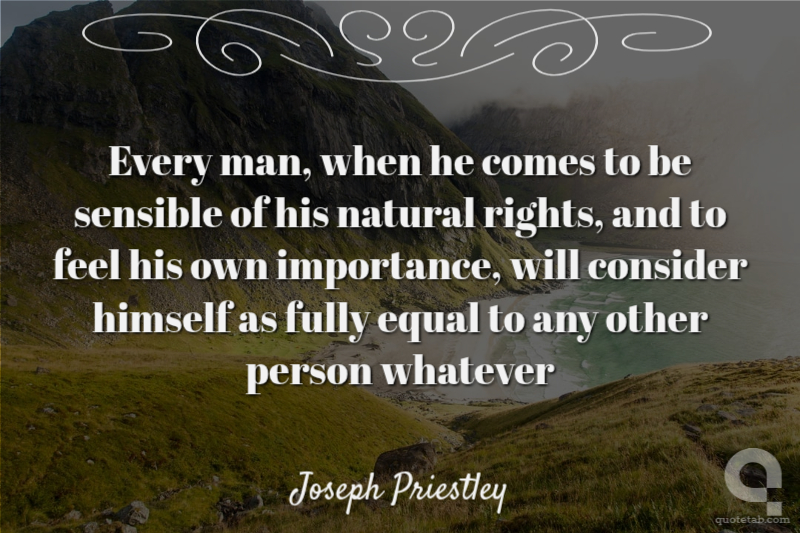 Every man, when he comes to be sensible of his natural rights, and to feel his own importance, will consider himself as fully equal to any other person whatever