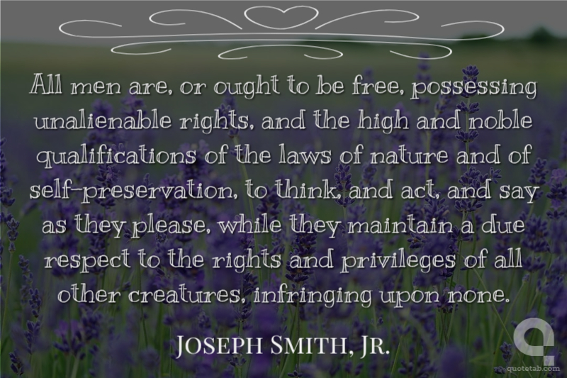 All men are, or ought to be free, possessing unalienable rights, and the high and noble qualifications of the laws of nature and of self-preservation, to think, and act, and say as they please, while they maintain a due respect to the rights and privileges of all other creatures, infringing upon none.