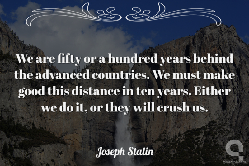 We are fifty or a hundred years behind the advanced countries. We must make good this distance in ten years. Either we do it, or they will crush us.