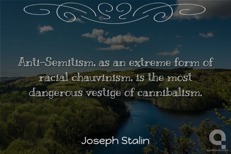 Anti-Semitism, as an extreme form of racial chauvinism, is the most dangerous vestige of cannibalism.