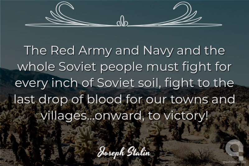 The Red Army and Navy and the whole Soviet people must fight for every inch of Soviet soil, fight to the last drop of blood for our towns and villages...onward, to victory!