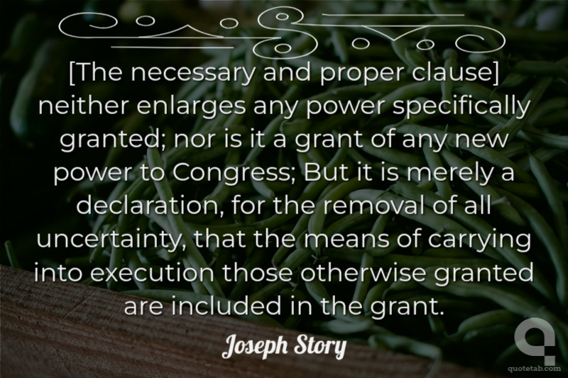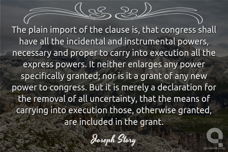 The plain import of the clause is, that congress shall have all the incidental and instrumental powers, necessary and proper to carry into execution all the express powers. It neither enlarges any power specifically granted; nor is it a grant of any new power to congress. But it is merely a declaration for the removal of all uncertainty, that the means of carrying into execution those, otherwise granted, are included in the grant.