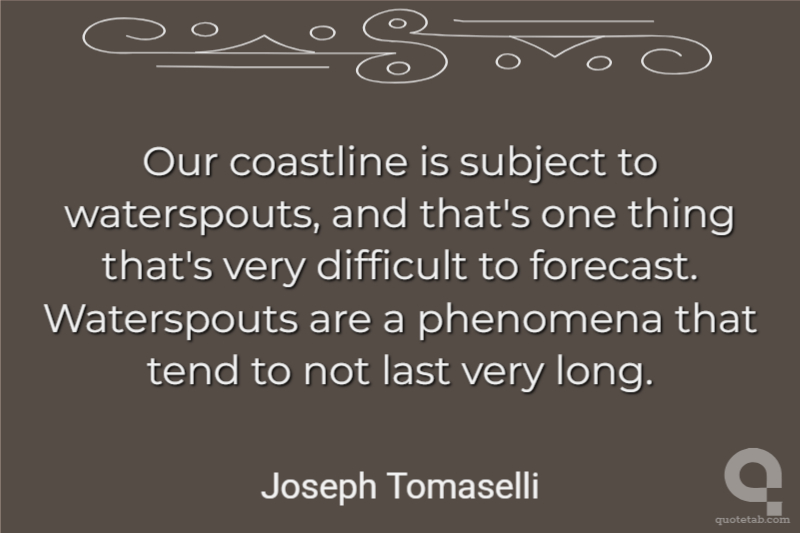 Our coastline is subject to waterspouts, and that's one thing that's very difficult to forecast. Waterspouts are a phenomena that tend to not last very long.