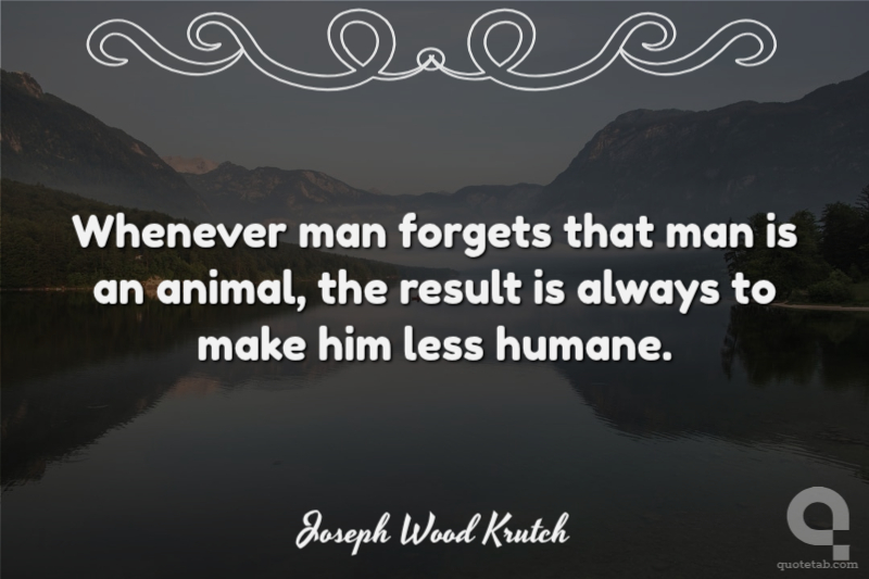 Whenever man forgets that man is an animal, the result is always to make him less humane.