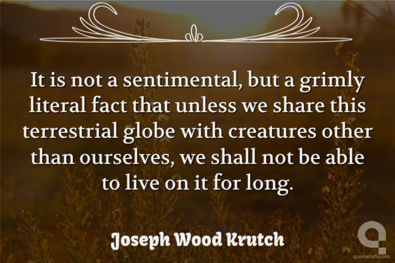 It is not a sentimental, but a grimly literal fact that unless we share this terrestrial globe with creatures other than ourselves, we shall not be able to live on it for long.