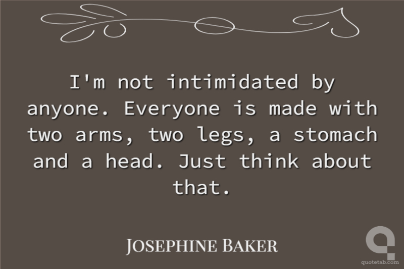I'm not intimidated by anyone. Everyone is made with two arms, two legs, a stomach and a head. Just think about that.