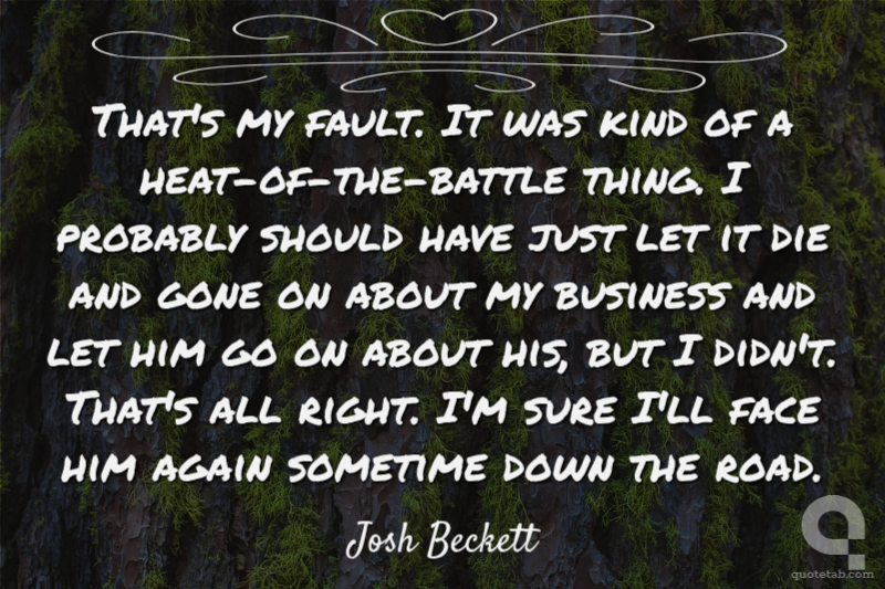 That's my fault. It was kind of a heat-of-the-battle thing. I probably should have just let it die and gone on about my business and let him go on about his, but I didn't. That's all right. I'm sure I'll face him again sometime down the road.