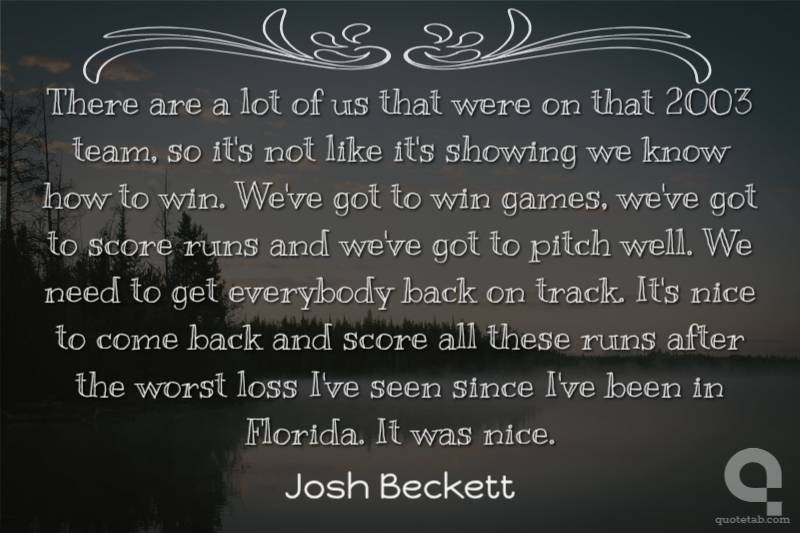 There are a lot of us that were on that 2003 team, so it's not like it's showing we know how to win. We've got to win games, we've got to score runs and we've got to pitch well. We need to get everybody back on track. It's nice to come back and score all these runs after the worst loss I've seen since I've been in Florida. It was nice.