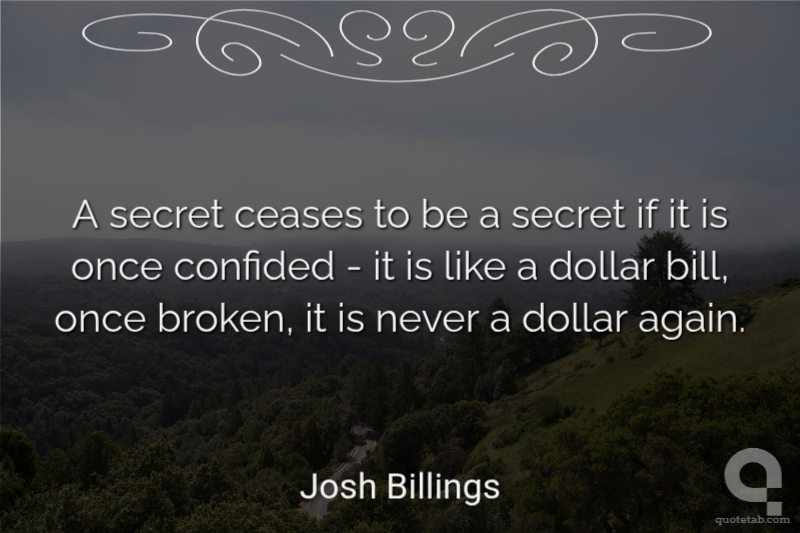 A secret ceases to be a secret if it is once confided - it is like a dollar bill, once broken, it is never a dollar again.