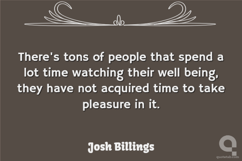 There's tons of people that spend a lot time watching their well being, they have not acquired time to take pleasure in it.