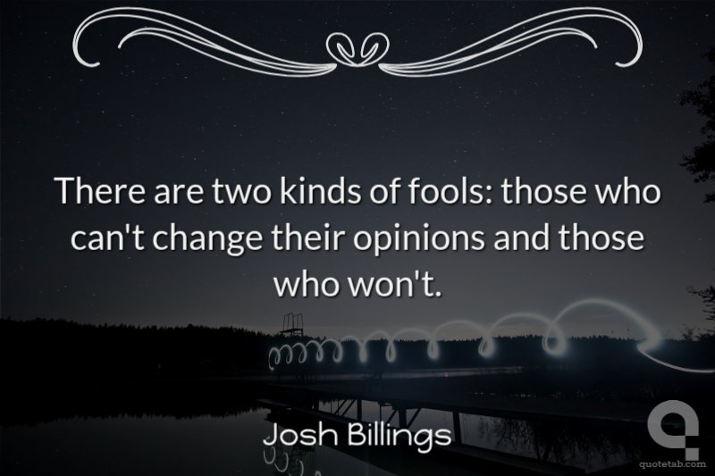 There are two kinds of fools: those who can't change their opinions and those who won't.