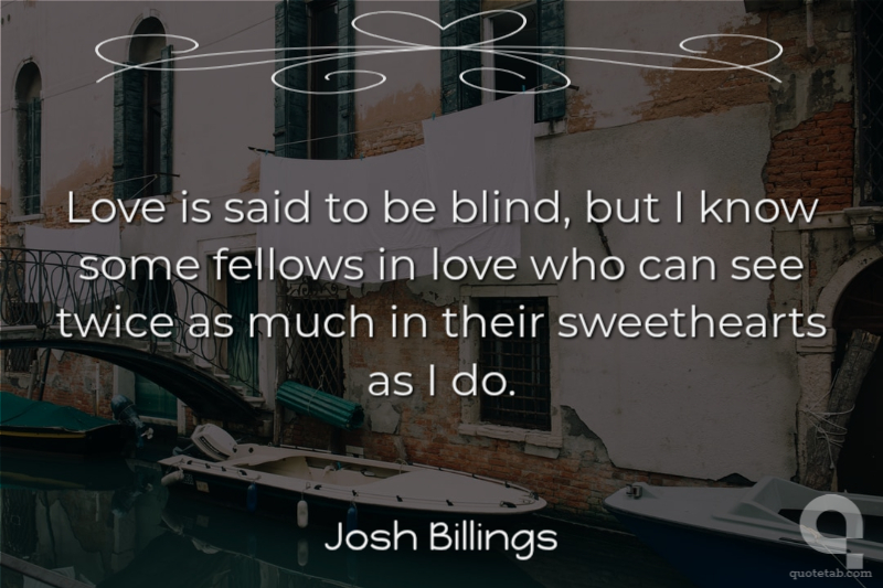 Love is said to be blind, but I know some fellows in love who can see twice as much in their sweethearts as I do.