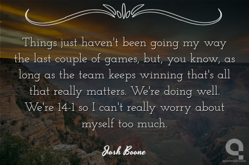 Things just haven't been going my way the last couple of games, but, you know, as long as the team keeps winning that's all that really matters. We're doing well. We're 14-1 so I can't really worry about myself too much.