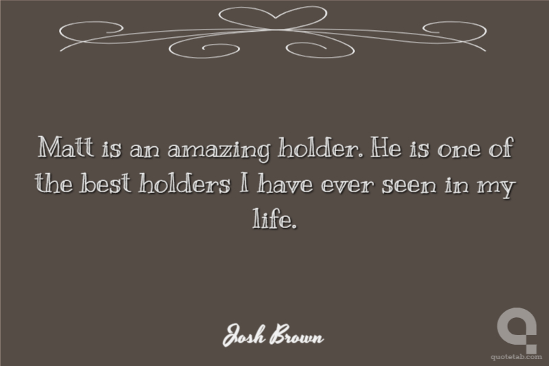 Matt is an amazing holder. He is one of the best holders I have ever seen in my life.