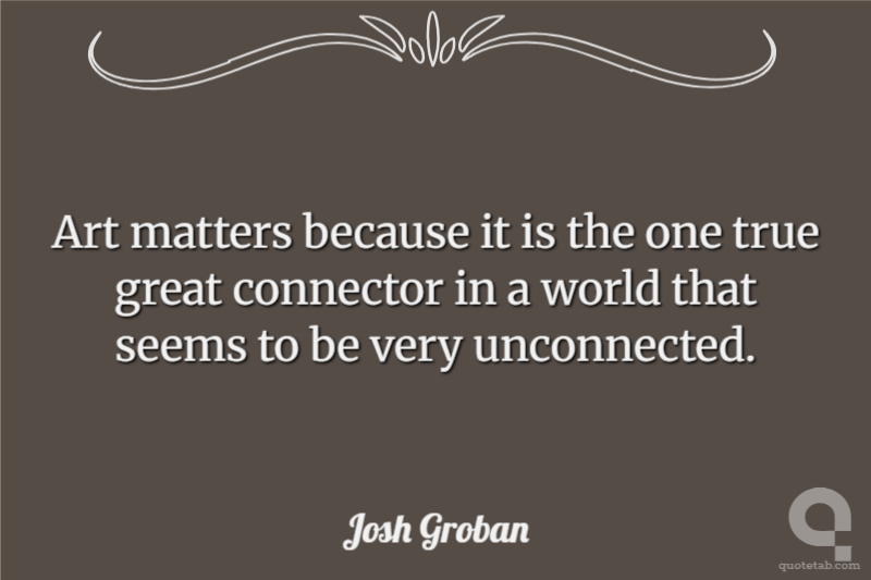 Art matters because it is the one true great connector in a world that seems to be very unconnected.