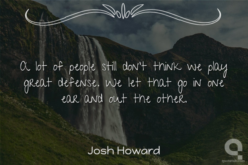 A lot of people still don't think we play great defense. We let that go in one ear and out the other.