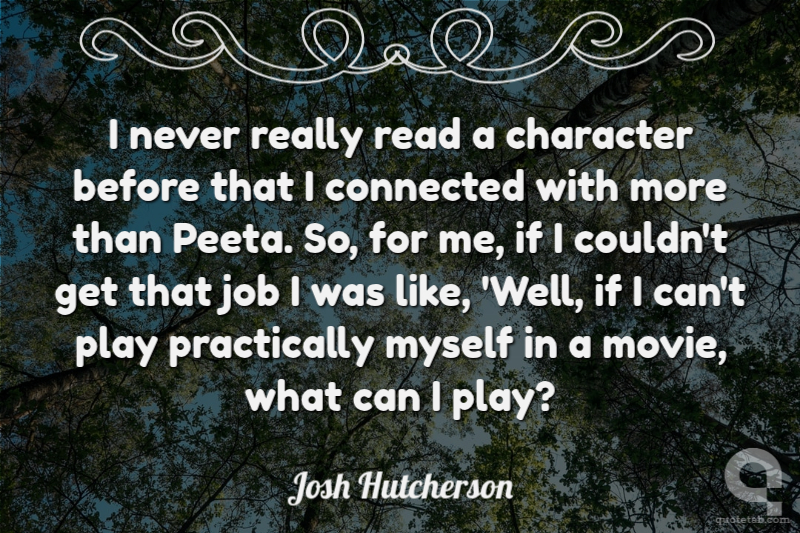 I never really read a character before that I connected with more than Peeta. So, for me, if I couldn't get that job I was like, 'Well, if I can't play practically myself in a movie, what can I play?
