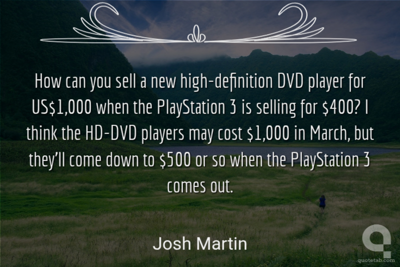 How can you sell a new high-definition DVD player for US$1,000 when the PlayStation 3 is selling for $400? I think the HD-DVD players may cost $1,000 in March, but they'll come down to $500 or so when the PlayStation 3 comes out.