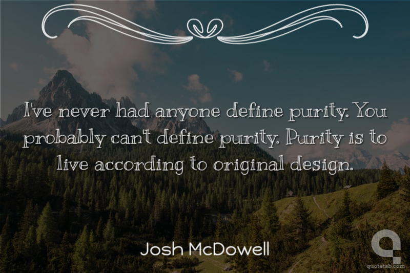 I've never had anyone define purity. You probably can't define purity. Purity is to live according to original design.
