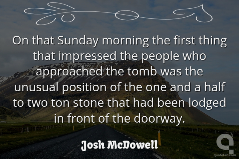 On that Sunday morning the first thing that impressed the people who approached the tomb was the unusual position of the one and a half to two ton stone that had been lodged in front of the doorway.