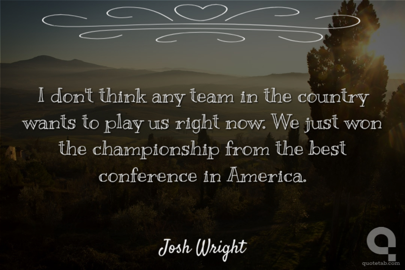 I don't think any team in the country wants to play us right now. We just won the championship from the best conference in America.