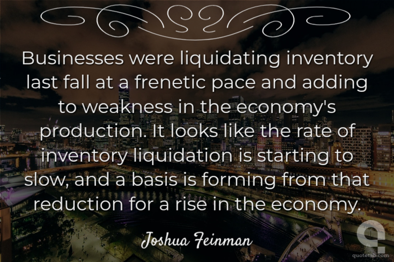 Businesses were liquidating inventory last fall at a frenetic pace and adding to weakness in the economy's production. It looks like the rate of inventory liquidation is starting to slow, and a basis is forming from that reduction for a rise in the economy.