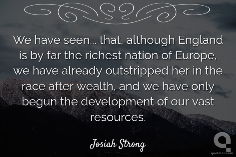 We have seen... that, although England is by far the richest nation of Europe, we have already outstripped her in the race after wealth, and we have only begun the development of our vast resources.