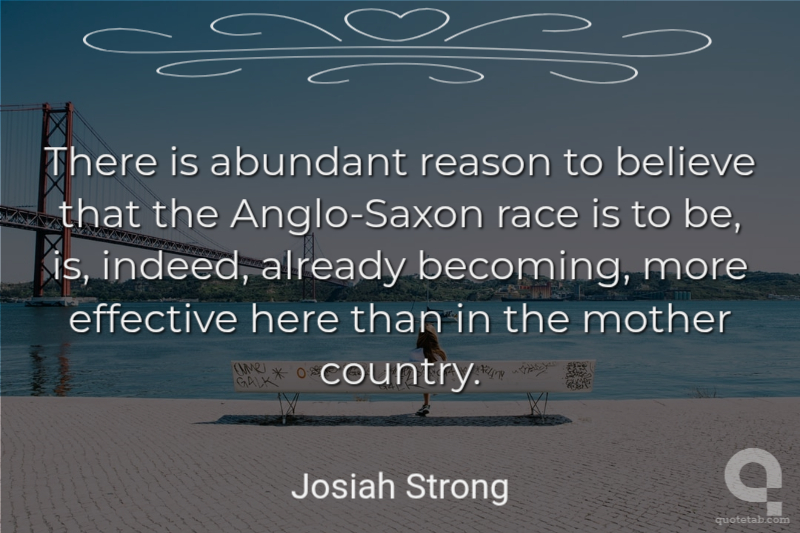 It seems to me that God, with infinite wisdom and skill, is training the Anglo-Saxons for an hour sure to come in the world's future... the final competition of races, for which the Anglo-Saxon is being schooled... .Whether the extinction of inferior races... seems to the reader sad or otherwise, it certainly appears probable.
