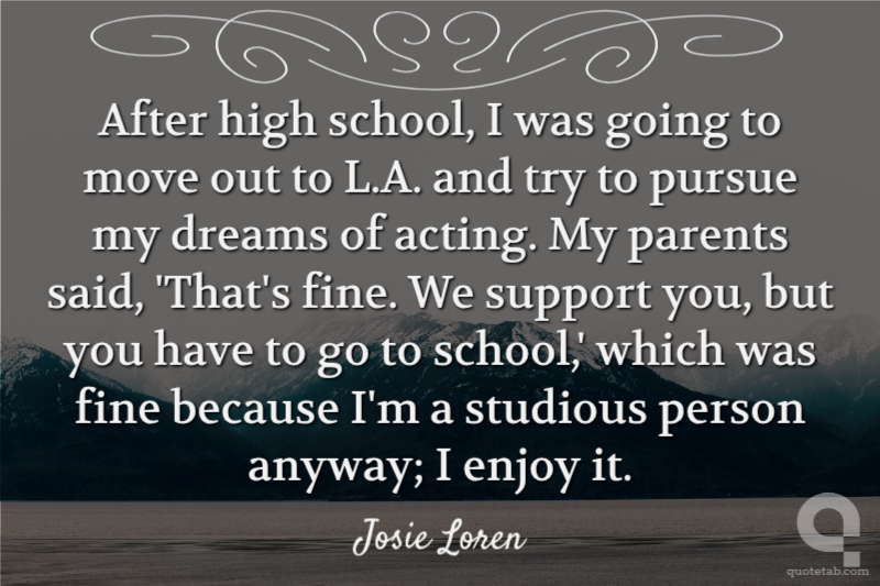 After high school, I was going to move out to L.A. and try to pursue my dreams of acting. My parents said, Thats fine. We support you, but you have to go to school, which was fine because Im a studious person anyway; I enjoy it.