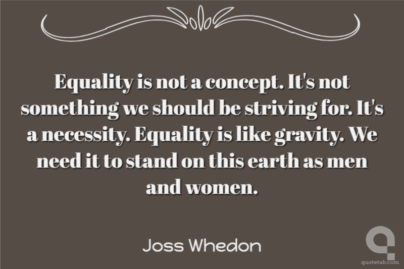 Equality is not a concept. It's not something we should be striving for. It's a necessity. Equality is like gravity. We need it to stand on this earth as men and women.