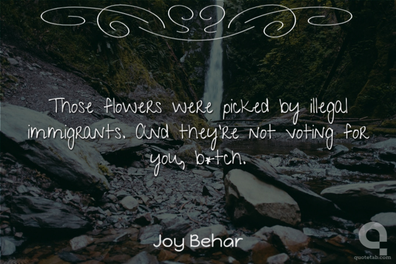Those flowers were picked by illegal immigrants. And they're not voting for you, b*tch.
