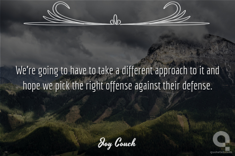 We're going to have to take a different approach to it and hope we pick the right offense against their defense.