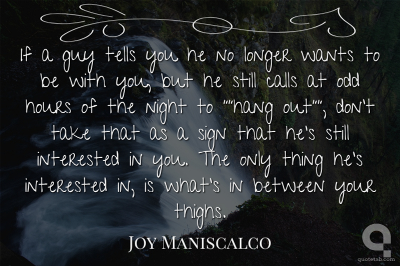 If a guy tells you he no longer wants to be with you, but he still calls at odd hours of the night to ""hang out"", don't take that as a sign that he's still interested in you. The only thing he's interested in, is what's in between your thighs.