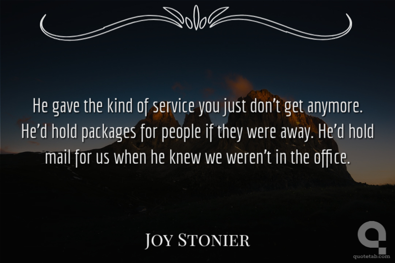 He gave the kind of service you just don't get anymore. He'd hold packages for people if they were away. He'd hold mail for us when he knew we weren't in the office.