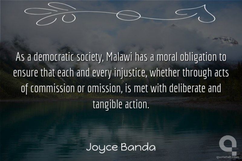 As a democratic society, Malawi has a moral obligation to ensure that each and every injustice, whether through acts of commission or omission, is met with deliberate and tangible action.