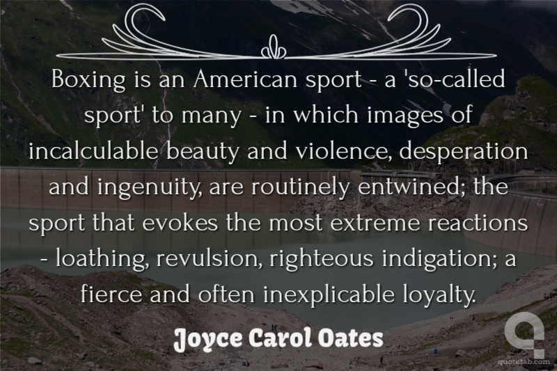 Boxing is an American sport - a 'so-called sport' to many - in which images of incalculable beauty and violence, desperation and ingenuity, are routinely entwined; the sport that evokes the most extreme reactions - loathing, revulsion, righteous indigation; a fierce and often inexplicable loyalty.
