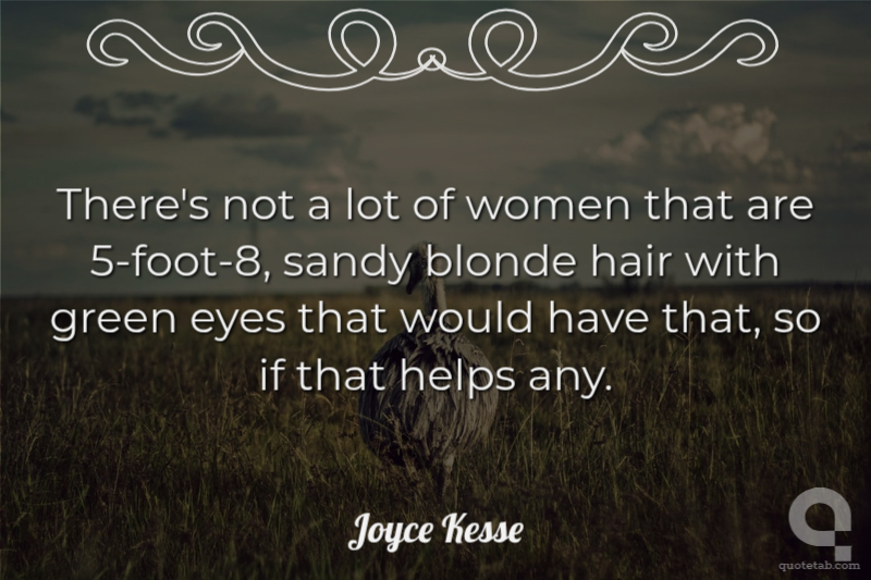 There's not a lot of women that are 5-foot-8, sandy blonde hair with green eyes that would have that, so if that helps any.