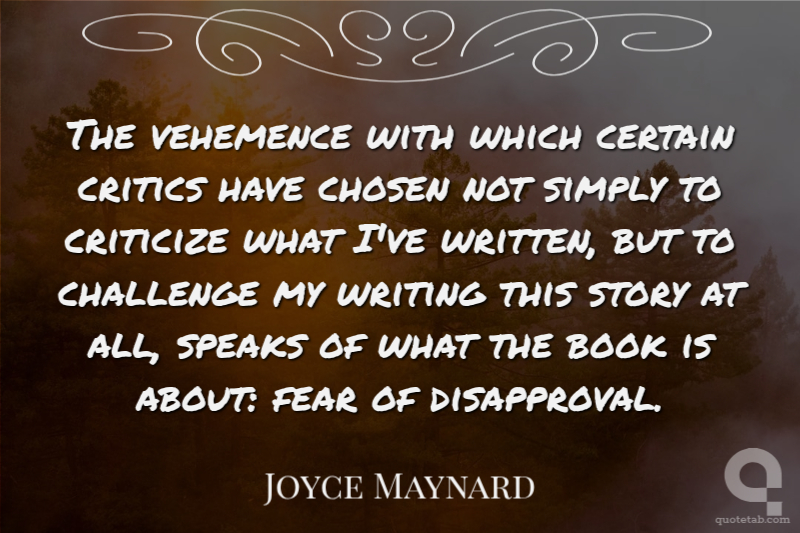 The vehemence with which certain critics have chosen not simply to criticize what I've written, but to challenge my writing this story at all, speaks of what the book is about: fear of disapproval.