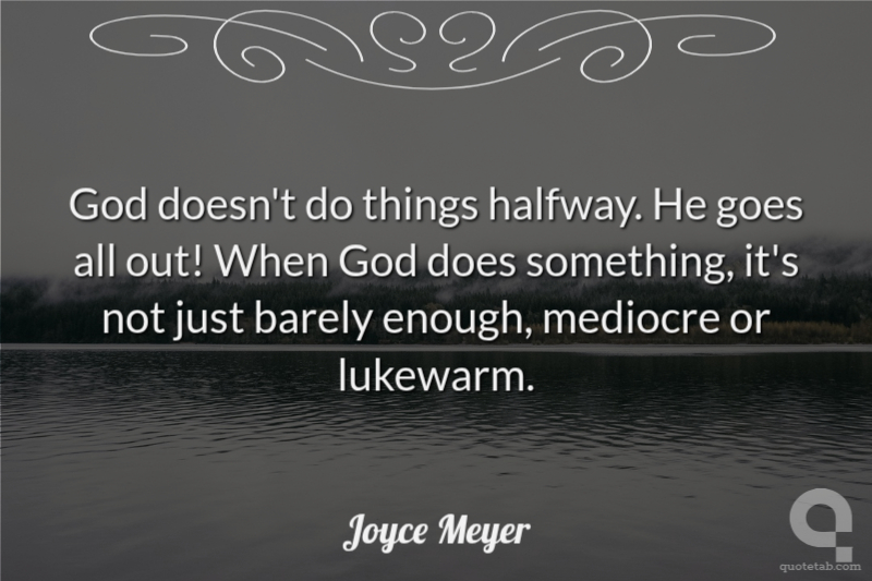 God doesn't do things halfway. He goes all out! When God does something, it's not just barely enough, mediocre or lukewarm.