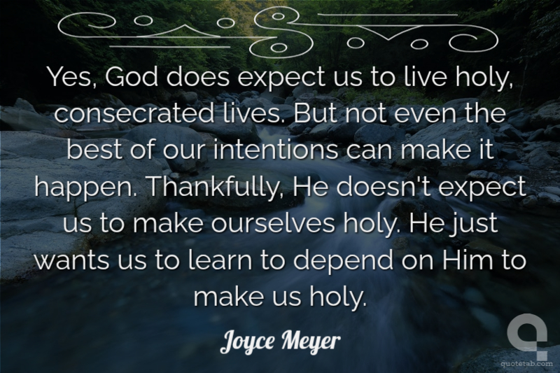 Yes, God does expect us to live holy, consecrated lives. But not even the best of our intentions can make it happen. Thankfully, He doesn't expect us to make ourselves holy. He just wants us to learn to depend on Him to make us holy.