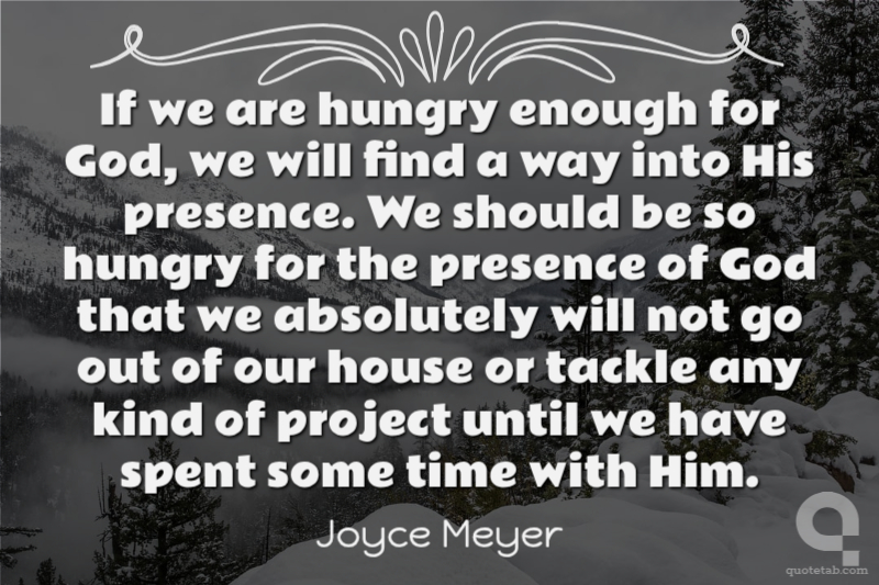 If we are hungry enough for God, we will find a way into His presence. We should be so hungry for the presence of God that we absolutely will not go out of our house or tackle any kind of project until we have spent some time with Him.